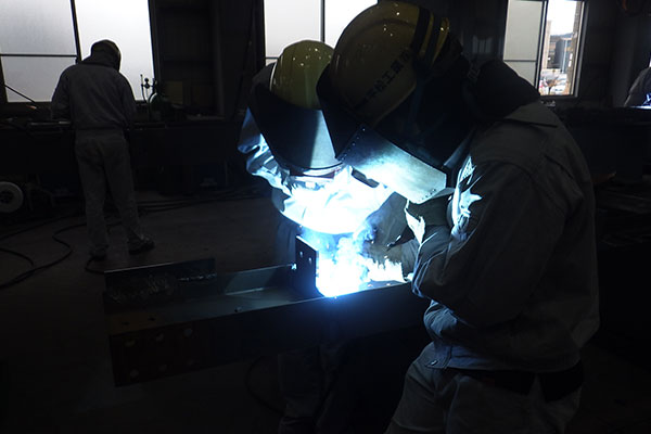 図面・一次加工(機械を使って鋼材の穴あけや切断、表面処理など)・組立・溶接・検査・塗装